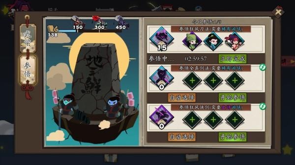 每次關卡結束或者完成成就可獲得武學卷軸,卷軸可進入圖書館房間內搜尋隨機獎勵,獎勵可能獲得丹藥,以提升武學或是夥伴的經脈。或是獲得夥伴的武魂碎片,來合成夥伴。